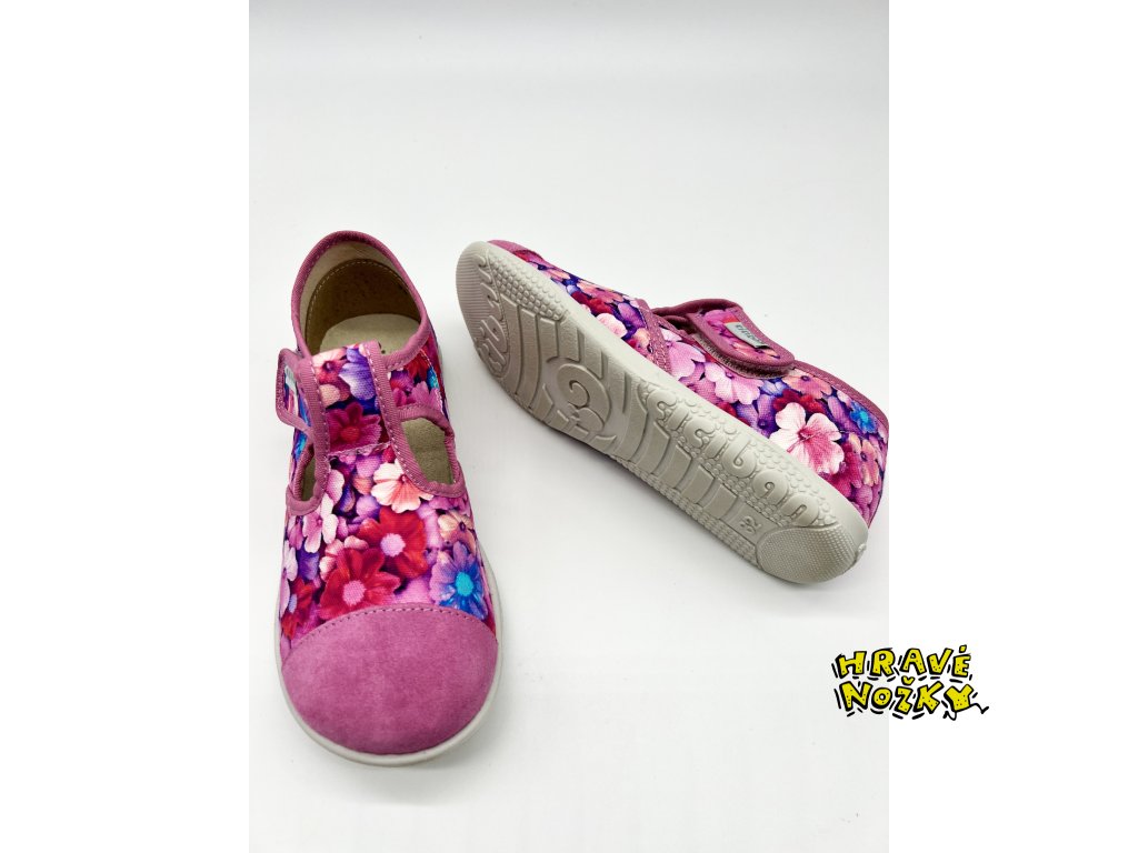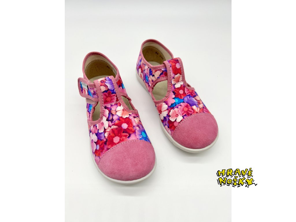 Lehká a ohebná podešev, opatek zpevněný kůží, zapínání na suchý zip a kožená špička jsou další benefity těchto kvalitních přezůvek. Kožená plná špička je výhodou u holčiček, které jsou akční.