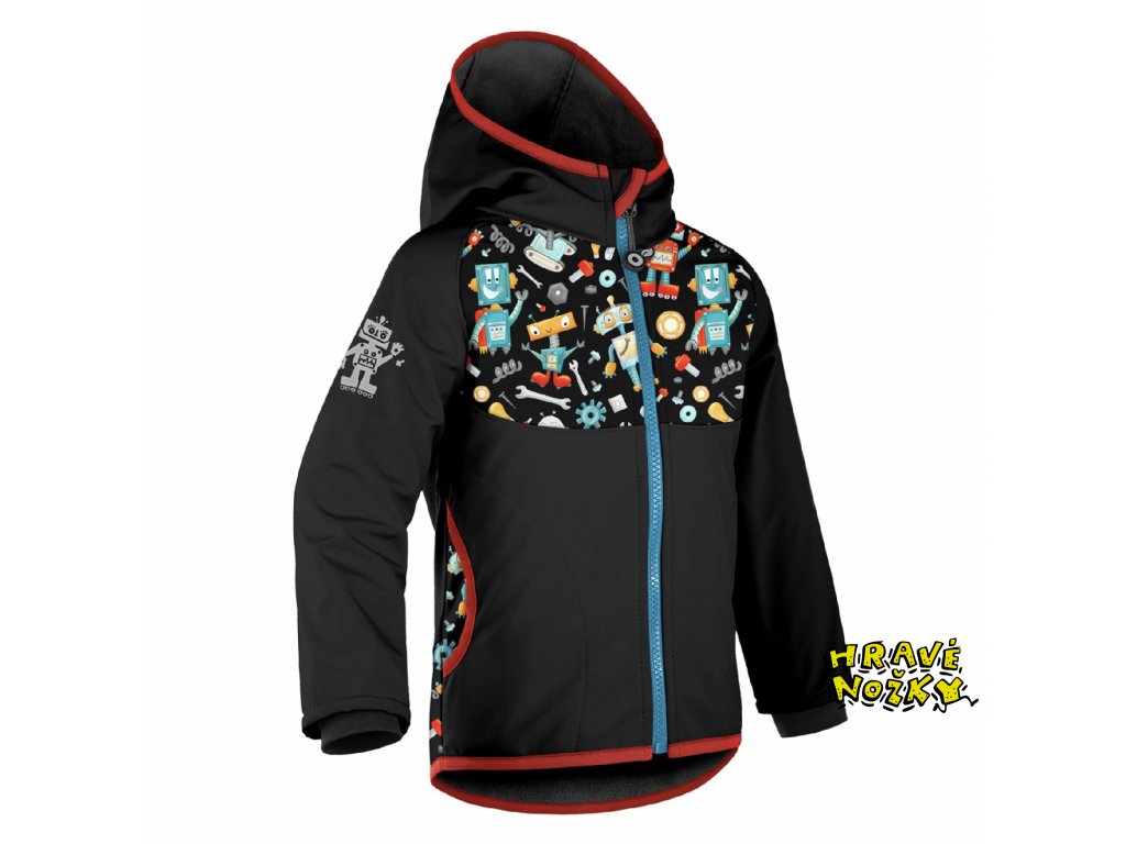 UNUO, DĚTSKÁ SOFTSHELLOVÁ BUNDA S FLEECEM BASIC, ČERNÁ, ROBOTI - Hravé nožky